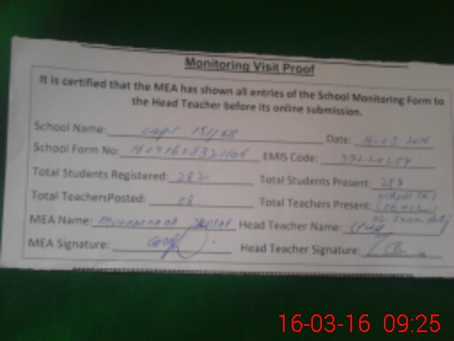 | Certified that this School was Inspected by the Undersigned MEA/DMO Today and the Information Stated Above is as Per Record. | |||||