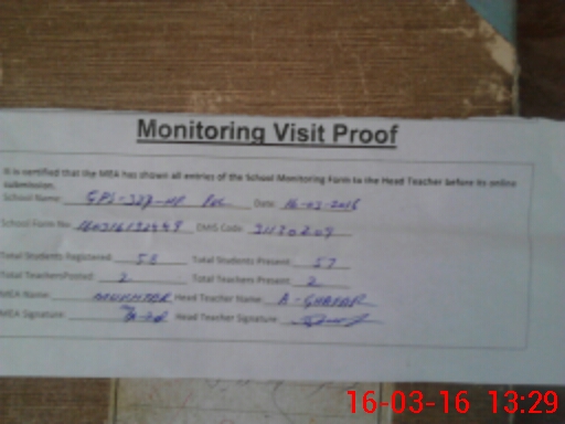 | Certified that this School was Inspected by the Undersigned MEA/DMO Today and the Information Stated Above is as Per Record. | |||||