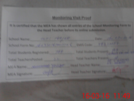 | Certified that this School was Inspected by the Undersigned MEA/DMO Today and the Information Stated Above is as Per Record. | |||||