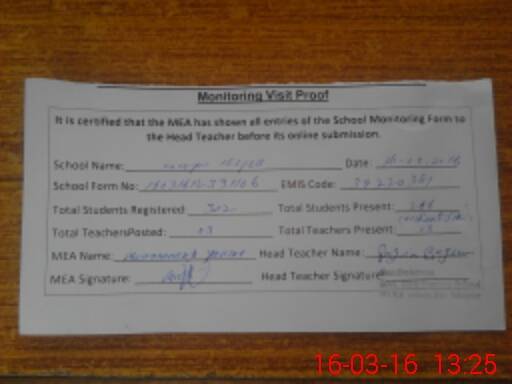 | Attendance Register | Head Teacher | MEA with School | Visit Proof |