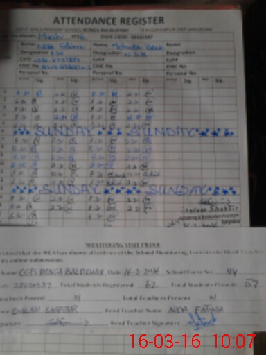 | Attendance Register | Head Teacher | MEA with School | Visit Proof |