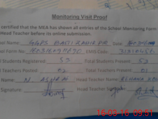 | EMIS Code: 31310456 | Name of School: GGPS BASTI ZAHIR PIR | |||