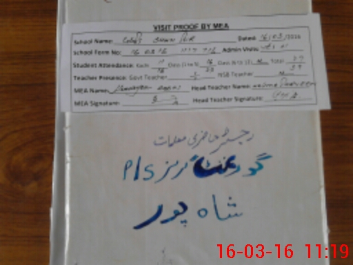 | Attendance Register | Head Teacher | MEA with School | Visit Proof |
