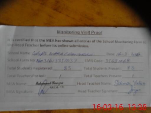 | Certified that this School was Inspected by the Undersigned MEA/DMO Today and the Information Stated Above is as Per Record. | |||||