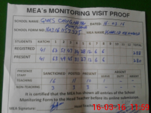 | Attendance Register | Head Teacher | MEA with School | Visit Proof |
