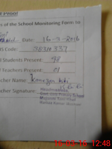 | Name: KA**** BI**** Designation: (School Headmaster's/Headmistress's) PST/PTC/JV Phone/Cell Number: 03**** |