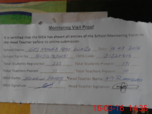 | Certified that this School was Inspected by the Undersigned MEA/DMO Today and the Information Stated Above is as Per Record. | |||||