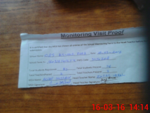 | EMIS Code: 31150208 | Name of School: GPS ASWAR PURA | |||
