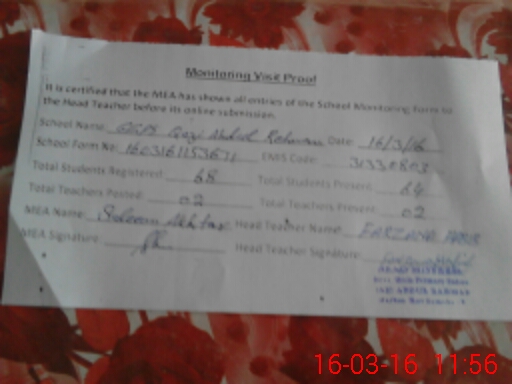 | EMIS Code: 31330803 | Name of School: GGPS QAZI ABADUR REHMAN | |||