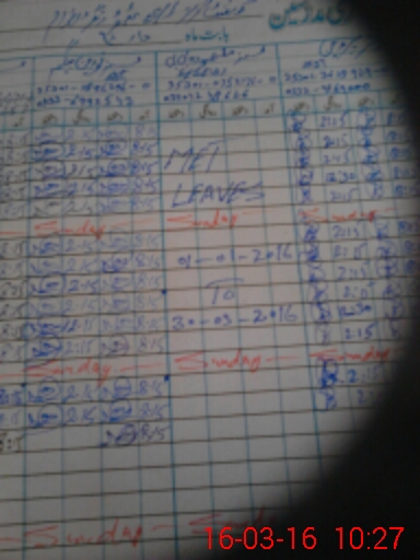 | CNIC | Full Name | Designation | R/C | Absence During Last Calender Month |