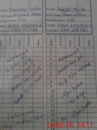 | CNIC | Full Name | Designation | R/C | Absence During Last Calender Month |