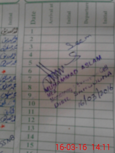 | School Visited by School Health & Nutrition Supervisor (No. of Visits) | 1 | Name1: | KHAWAR HAYAT | Name2: | |
