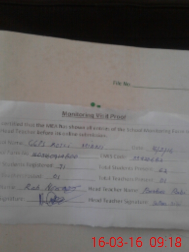 | Attendance Register | Head Teacher | MEA with School | Visit Proof |