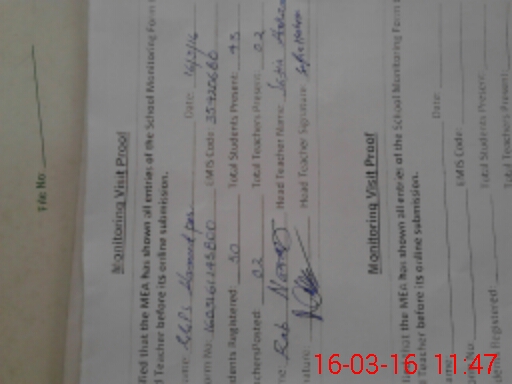| Attendance Register | Head Teacher | MEA with School | Visit Proof |