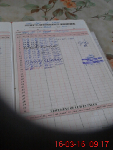 | CNIC | Full Name | Designation | R/C | Absence During Last Calender Month |