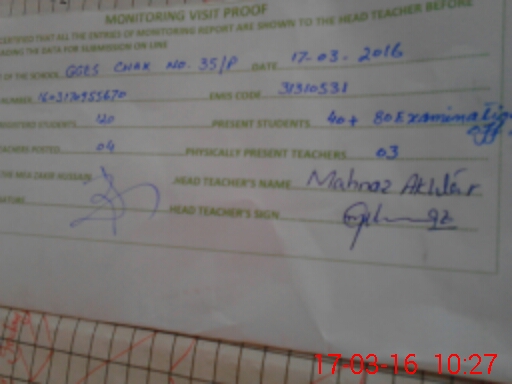 | EMIS Code: 31310531 | Name of School: GGES CHAK NO. 35/P KHANPUR | |||