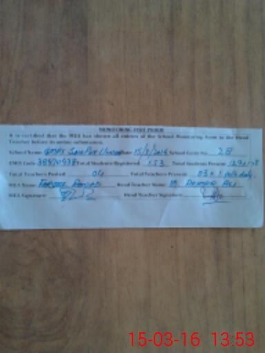 | Attendance Register | Head Teacher | MEA with School | Visit Proof |