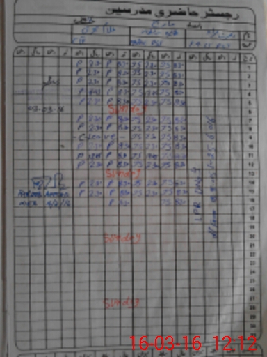 | CNIC | Full Name | Designation | R/C | Absence During Last Calender Month |