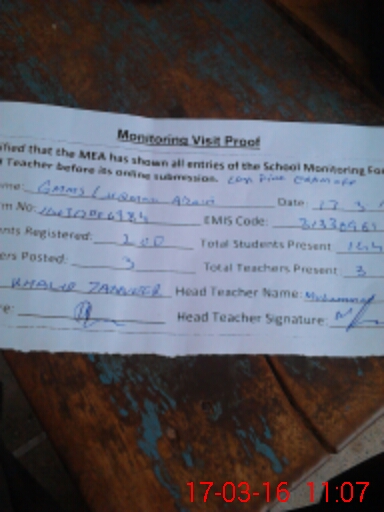 | Attendance Register | Head Teacher | MEA with School | Visit Proof |