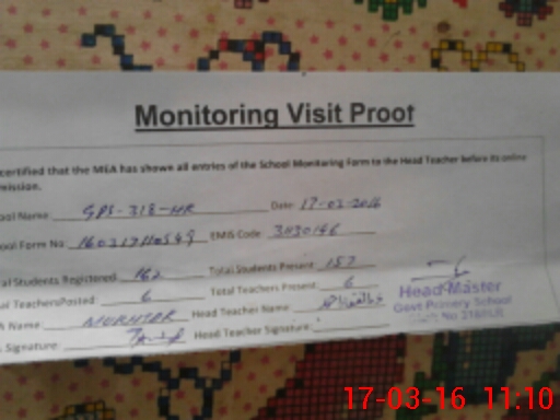 | Attendance Register | Head Teacher | MEA with School | Visit Proof |