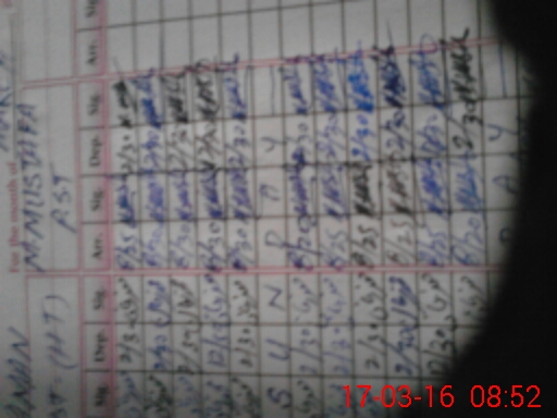 | Monitoring Date: 17-03-2016 | Start Time: 17-03-2016 08:47 AM | End Time: 17-03-2016 09:05 AM | Name of MEA: BA**** HU**** SH**** | |