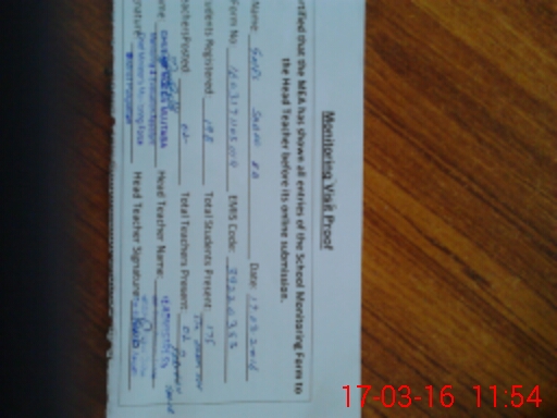 | Attendance Register | Head Teacher | MEA with School | Visit Proof |