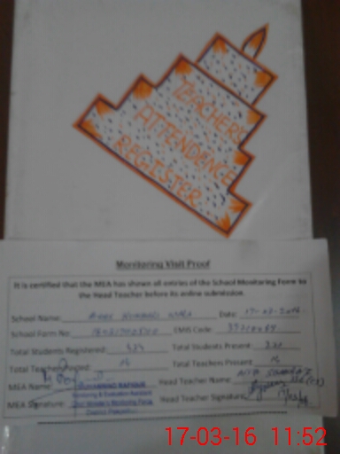 | Attendance Register | Head Teacher | MEA with School | Visit Proof |