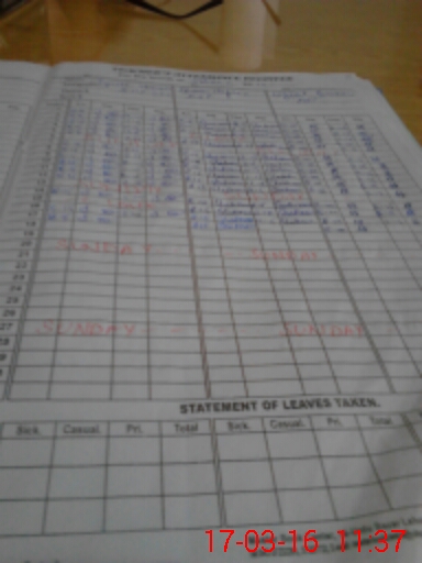 | CNIC | Full Name | Designation | R/C | Absence During Last Calender Month |