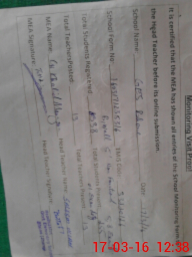 | Certified that this School was Inspected by the Undersigned MEA/DMO Today and the Information Stated Above is as Per Record. | |||||