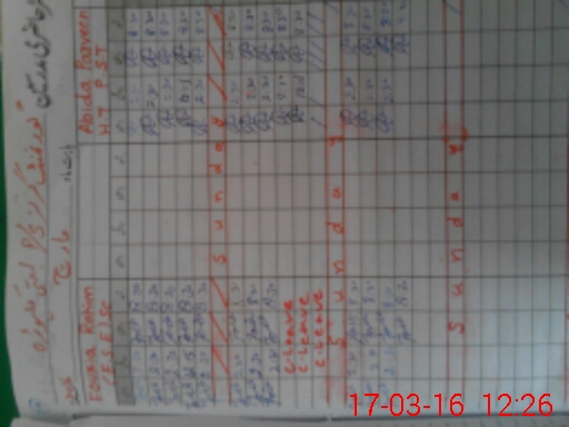 | School Visited by School Health & Nutrition Supervisor (No. of Visits) | 1 | Name1: | Muhammad Javid | Name2: | Nil |