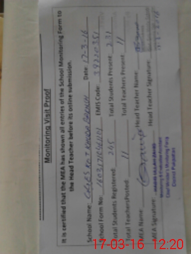 | Attendance Register | Head Teacher | MEA with School | Visit Proof |