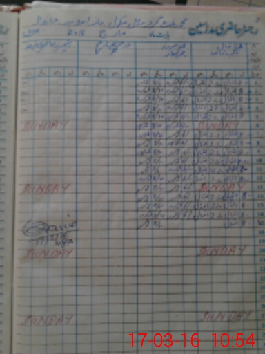 | CNIC | Full Name | Designation | R/C | Absence During Last Calender Month |