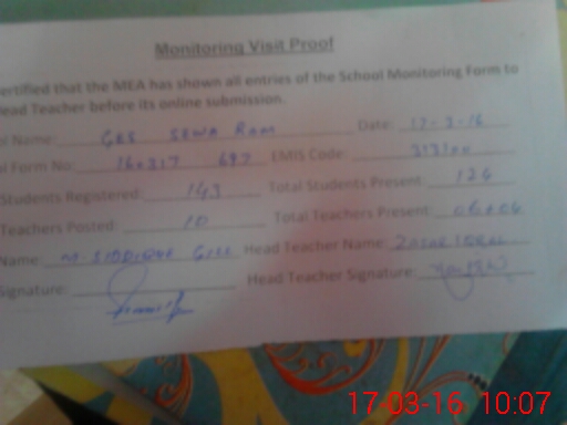 | EMIS Code: 31310051 | Name of School: GES SEWA RAM | |||