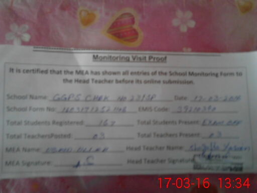 | Certified that this School was Inspected by the Undersigned MEA/DMO Today and the Information Stated Above is as Per Record. | |||||
