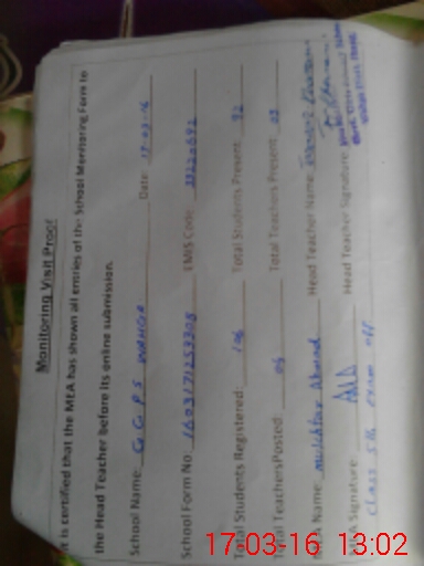 | Certified that this School was Inspected by the Undersigned MEA/DMO Today and the Information Stated Above is as Per Record. | |||||