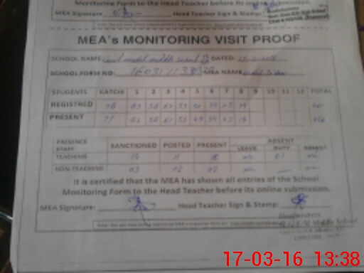 | Certified that this School was Inspected by the Undersigned MEA/DMO Today and the Information Stated Above is as Per Record. | |||||