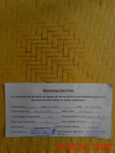 | Certified that this School was Inspected by the Undersigned MEA/DMO Today and the Information Stated Above is as Per Record. | |||||