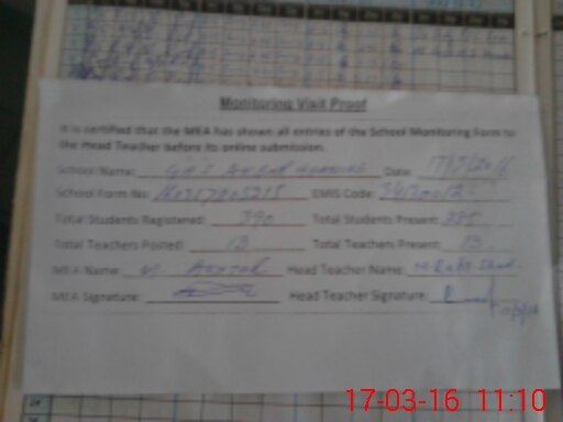 | Certified that this School was Inspected by the Undersigned MEA/DMO Today and the Information Stated Above is as Per Record. | |||||