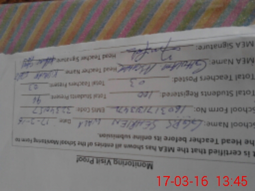 | Certified that this School was Inspected by the Undersigned MEA/DMO Today and the Information Stated Above is as Per Record. | |||||