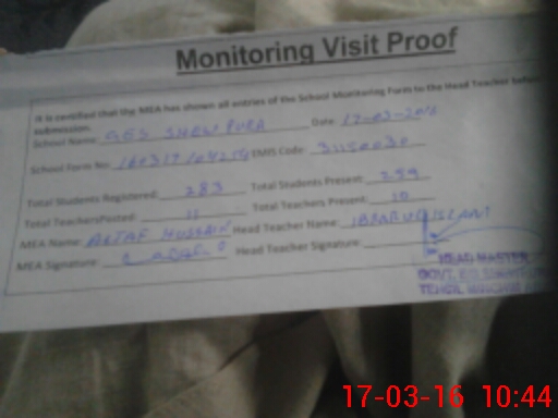 | EMIS Code: 31150030 | Name of School: GHS SHEW PURA | |||