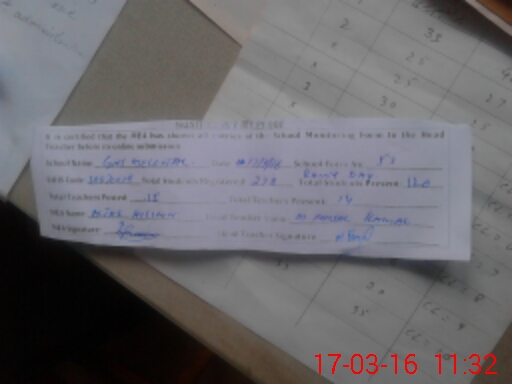 | Attendance Register | Head Teacher | MEA with School | Visit Proof |