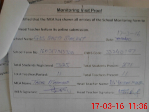 | Certified that this School was Inspected by the Undersigned MEA/DMO Today and the Information Stated Above is as Per Record. | |||||