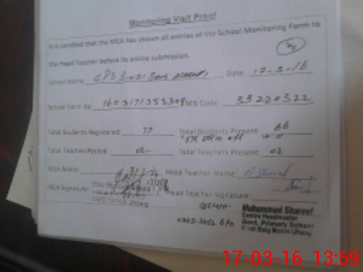 | Attendance Register | Head Teacher | MEA with School | Visit Proof |