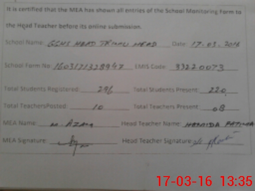 | EMIS Code: 33220073 | Name of School: GGHS TRIMU HEAD | |||