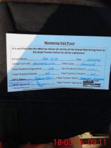 | Attendance Register | Head Teacher | MEA with School | Visit Proof |