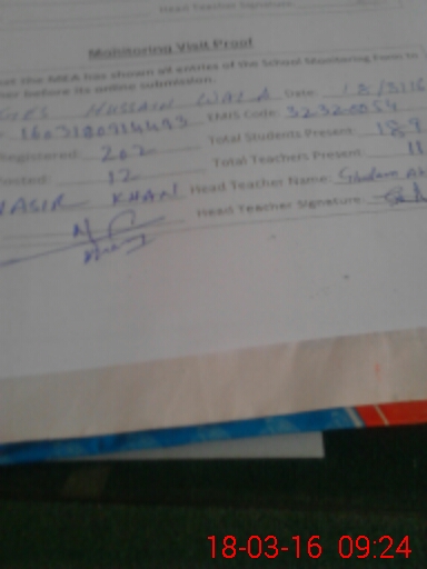 | EMIS Code: 32320054 | Name of School: GHS HUSSAIN WALA | |||