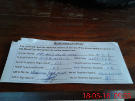 | Attendance Register | Head Teacher | MEA with School | Visit Proof |