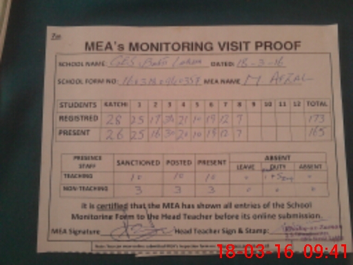 | Certified that this School was Inspected by the Undersigned MEA/DMO Today and the Information Stated Above is as Per Record. | |||||