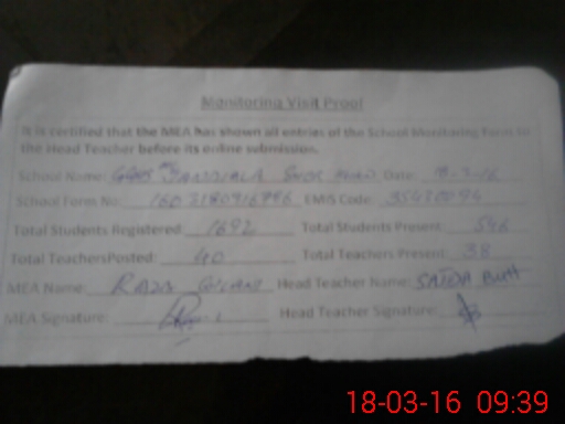 | Certified that this School was Inspected by the Undersigned MEA/DMO Today and the Information Stated Above is as Per Record. | |||||