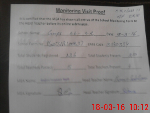 | Certified that this School was Inspected by the Undersigned MEA/DMO Today and the Information Stated Above is as Per Record. | |||||